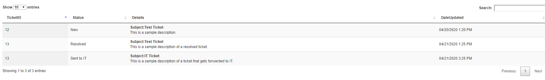 On this page, the user can send a help desk ticket to OIGCN and can track progress on open tickets.